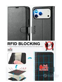 TUCCH Custodia per iPhone 17 Pro Max 6,9-pollici 5G 2025 [RFID Blocking] Portafoglio | Cover Pelle PU Antiurto, Funzione Supporto Slot Schede Protezione Chiusura Magnetica, Nero texturizzato