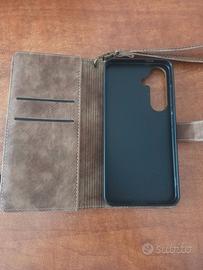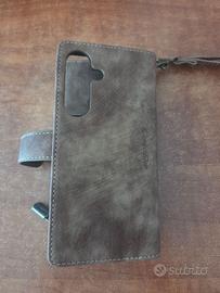 vendo custodia case cover a libretto per samsung s24/s25, marca caseme, in pelle alcantara, di produzione artigianale. colore marrone. nel libretto vi sono vari scomparti per carte di credito, monete e banconote. dotato di laccetto con gancio metallico. dimensioni approssimative in centimetri: larghezza 8, lunghezza 15,5, altezza 2,5. nuovissima mai utilizzata. regalo non gradito. euro 10