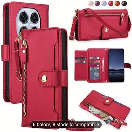 Custodia portafoglio con tracolla per Xiaomi redmi note 14 pro colore marrone.