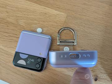 custodia cover case originale Samsung con gancio clip a forma di Z Flip viola per auricolari Buds Pro FE 2 3 4 non serve smontarlo per caricare