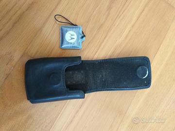 custodia cover Motorola cellulare vintage e accessorio con logo automatico di chiusura in parte scollato