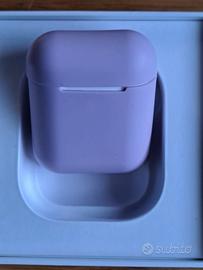 Custodia di ricarica tramite cavo Apple Airpods e cuffia sinistra (seconda generazione) Custodia di ricarica tramite cavo con cuffia sinistra e cover siliconica lilla Custodia e Airpods Sinistro funzionante, con segni di usura visibili in foto Venduto con scatola, modello anno 2019 acquistato a fine 2020