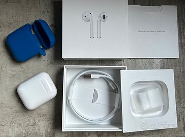 Vendo custodia di ricarica di Apple AirPods 2 modello A2031 perfettamente funzionante, completa di confezione e cavo di ricarica originali e custodia azzurra. Invio anche le cuffie di cui NON funziona solo il microfono (si possono quindi utilizzare per l’ascolto).