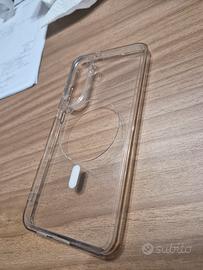 Cover/custodia trasparente in pvc militare (antiurto con angoli rinforzati) con foro tondo retrostante per carica wireless in più 1 pellicola in vetro temperato per Samsung S25 Fe