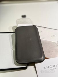 Custodia Lucrin per iPhone 13 Pro con linguetta. Pelle liscia, color tortora. Ritiro in loco.