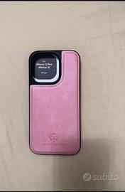 Custodia MagSafe in similpelle rosa con portafoglio rimovibile tramite calamita.