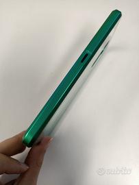 Custodia con montatura in metallo e assorbimento magnetico, vetro temperato a schermo intero. Colore verde. Acquistato per errore ed il reso mi costa più di quanto l'abbia acquistato.