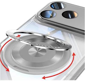 Occasione, scontatissima custodia per Iphone 17 Pro Max, nuova, mai usata nella sua confezione. È dotata di anello girevole a 360°, comodissimo per godersi i video su Youtube e sui social, compatibile con MagaSafe. Ha anche le protezioni integrate per le fotocamere, così non occorre acquistarle a parte. Realizzata in resistente retro in PC e materiale TPU assorbente agli urti, questa custodia offre un'eccellente protezione da urti, cadute e graffi. Soddisfa gli standard militari per i test di caduta, assicurando la longevità del tuo dispositivo. Il supporto integrato è girevole e può essere posizionato in diverse angolazioni, rendendo più facile guardare video o partecipare a videochiamate. Il supporto offre anche una presa extra, permettendo al tuo smartphone di rimanere saldamente in mano e riducendo il rischio di cadute. Con un bordo leggermente rialzato, la custodia protegge lo schermo e la fotocamera dal contatto diretto con le superfici. La costruzione sottile di questa custodia assicura che il tuo iPhone 17 Pro Max non diventi inutilmente spesso.