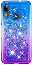 Cover per smartphone Motorola Moto E6 Plus, con cuoricini scintillanti che si spostano al movimento.