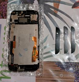 DISPLAY +TOUCH SCREEN LCD VETRO+ COVER per HTC ONE M8 CORNICE NERO FRAME ancora con pellicola sul display