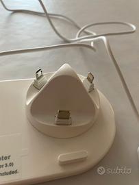 Base di ricarica multipla per smartphone, ricarica wireless, ricarica iphone android Usb C, micro usb, supporto per apple watch, uscite usb sul retro per collegare altri dispositivi.