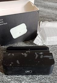 Dock station colore nero nuova con ancora inserita la pellicola protettiva per Galaxy Samsung o altri prodotti muniti di attacco Micro USB, postazione dove è possibile appoggiare lo smartphone o il tablet per ricaricarlo e utilizzarlo durante la fase di ricarica. un'ottima soluzione per continuare a svolgere le tue attività quotidiane in quanto durante la ricarica mantiene inalterata la potenza del tuo dispositivo. Inoltre, la base di appoggio possiede al di sotto un tappetino gommato antiscivolo che impedisce alla stazione di scivolare, nuova e mai usata nella sua confezione originale come si evince dalle foto cedo a soli 10 euro.