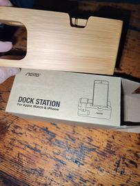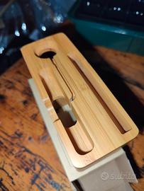 Bellissima Dock Station in bambù per Apple Watch e iPhone, ma va bene anche per altri Smartphone o Smart Watch. Nuovo mai usato