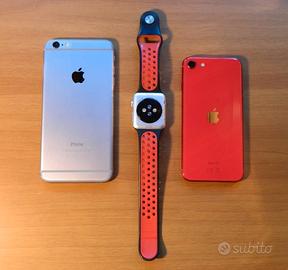 iPhone 6 Plus + iPhone SE (2nd generation) + Apple Watch 42 mm alluminio (1a generazione)