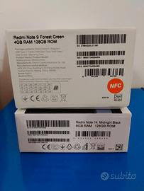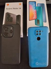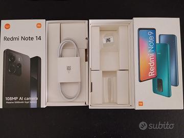 Due telefoni funzionanti con difetti: Redmi 14 Note 8Gb ram 128 Gb rom, funziona tutto tranne l'impronta digitale perché sostituito schermo con uno AMOLED come l'originale, può capitare che a volte lo schermo per qualche secondo si illumina poi torna normale premendo il tasto accensione. La cover posteriore è rotta in basso , è stata riparata e con la cover di silicone in dotazione non si nota nulla. Redmi 9 Note 4 Gb ram 128 Gb rom, funziona tutto tranne il tasto volume alto ( il volume si alza premendo il tasto volume basso e scorrendo verso l'alto) cover posteriore sostituita, come lo schermo e batteria che sono nuovi. Entrambi i display sempre protetti da pellicola privi di graffi. È presente un cavo di alimentazione mai utilizzato, e le confezioni, niente altro. Non sono nuovi ripeto. No reclami
