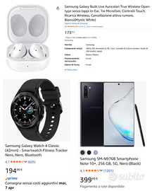 Come da titolo vendo completo ecosistema Samsung, Note 10+, galaxy watch 4 Classic, e Galaxy Buds Live. Tutto perfettamente funzionante e senza nessun difetto estetico, solo il telefono ha un pixel difettato al centro come da foto. Scatole e accessori, tutti gli articoli gli ho sempre utilizzati con cover e con cura maniacale. Nell'ultima foto c'è il prezzo attuale di tutti gli articoli nuovi, per un totale di circa 760 euro. Accessori, cover tutto incluso. Spedisco solo con TuttoSubito ma preferirei scambio a mano a Bari.