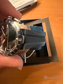 OROLOGIO FESTINA F23000/1 Orologio uomo Festina della collezione Connected realizzato con cassa in titanio color silver con un diametro di 44 mm e uno spessore di 13.96 mm. Il quadrante è color blu notte con indici color blu e digitale. Ha un vetro zaffiro e la resistenza all'acqua è di 3 ATM. Il cinturino è realizzato in gomma di 22.8 mm color blu notte con una chiusura a fibbia ad ardiglione. Un bellissimo orologio che resisterà al passare del tempo. L'app da scaricare è Festina Connected. Le sue funzioni sono: frequenza cardiaca, modalità esercizio, connected GPS, conta passi, distanza, calorie bruciate, monitoraggio del sonno, notifiche dei messaggi, notifiche chiamate, controllo della musica, controllo della fotocamera, trova telefono, salva la posizione in cui sei già stato, portami a casa, IFTTT, timer, ora universale, sveglie, cronometro e meteo. Il compagno ideale sia per una giornata in ufficio che per l'allenamento serale.