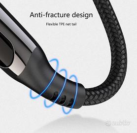 La struttura intrecciata rinforzata garantisce una maggiore resistenza all’usura quotidiana, mentre il design anti-piegatura protegge i punti di connessione da rotture e stress meccanici. Il cavo è adatto sia per la ricarica che per l’alimentazione di dispositivi compatibili con USB-C.