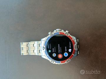 Vendesi smartwatch Fossil in ottime condizioni acciaio con schermo 46mm. Lo smartwatch è dotato di sistema operativo OS by Google ed è compatibile con telefoni Android ed Apple. Consente di gestire tutto il telefono dal proprio polso: - rispondere ed avviare una chiamata con i propri contatti in rubrica e digitando il numero - ricevere le notifiche e rispondere tramite tastiera o inserimento vocale su WhatsApp, mail, ecc. - impostare la vista navigatore su Google Maps o altre app di navigazione - contare i passi, misurare il proprio battito ed altre utili impostazioni fitness Io prodotto è venduto unitamente al proprio cavo di ricarica. La batteria consente di raggiungere tranquillamente la fine della giornata anche con un uso intenso.