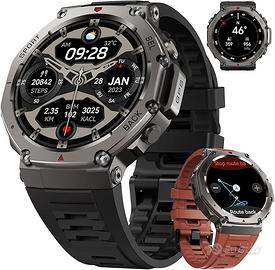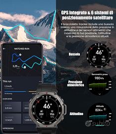 Orologio per uomo Impermeabile IP68 - Robusto in metallo di grado aerospaziale - Schermo AMOLED HD IPS con dimensione di 1,43 pollici e risoluzione di 466x466 Pixel - GPS integrato con 6 sistemi di posizionamento satellitare - Tattico con Bussola Barometro Altimetro Bussola Fitness Tracker Sportivo - Monitor HR/SPO2/Sonno per iPhone e Android - Dispone di più di 100 modalità sportive - Monitoraggio della salute - Batteria integrata da 530 mAh di lunga durata.