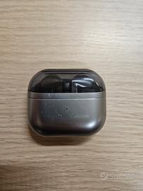 Cuffie in ear bluetooth Samsung Galaxy Buds 3 Pro, con scatola originale, scontrino e gommini di riserva nuovi. Condizioni perfette sempre tenute con custodia originale Samsung x Keith Haring inclusa, usate anche poco perché pensavo di averle perse per qualche mese poi le ho ritrovate nella tasca di un giubbino che non usavo.