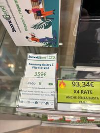 Beggio Elettronica Secondhand Mobile vende Galaxy Z-FLIP 5 - 512 gb Ricondizionato con 12 mesi di garanzia Ricondizionato grado estetico B ( piccolissimi segni di usura ) Certificato con piu di 40 test con software professioniale ogni competente funziona perfettamente Tutti componenti originali Servizi di : Pagamento dilazionato senza busta paga , basta un bancomat Permuta con altri dispositivi, solo su appuntamento Per info e prenotazioni scrivici al numero 3209726061 Possiamo spedire ma preferiamo consegna a mano in negozio Ci troviamo a Mestre -Via Fradeletto n8-10 Venezia