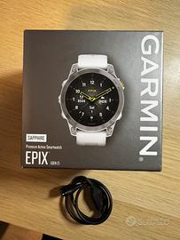 Vendo il mio Garmin Epix gen 2 47 mm con vetro zaffiro in perfette condizioni, cinturino originale bianco usato.