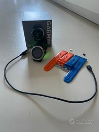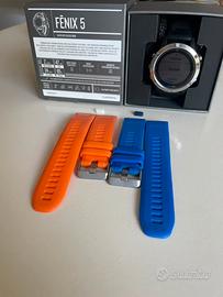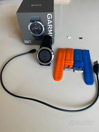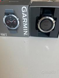 Fenix 5 da 47 mm Smartwatch GPS multisport con mappe, musica, analisi fisiche e molto altro. Non ha bisogno di presentzuoni. Funzionante in ottime condizioni con la sua scatola orginale cavo e regalo 2 cinturini e 2 copri connettori. Prodotto solo da indossare nesun difetto normali segni di usura