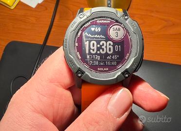 Vendo Garmin instinct 2x Solar 50mm in perfette condizioni color graphite e super robusto. Usato poco e vendo per passaggio a modello nuovo. Scatola originale con conturino opzionale originale dello stesso colore. In foto cinturino originale arancio.