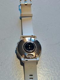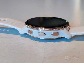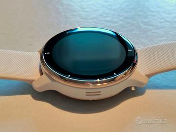 Vendo Garmin Venu 2 Plus. Colore: bianco avorio. Nessun graffio sullo schermo, perfetto. Batteria con prestazioni come da nuovo. Funzionamento perfetto. Scatola originale. Cavo di ricarica originale Garmin. Cinturino aggiuntivo originale Garmin in silicone, nuovo. Scontrino dicembre 2023. Funzioni: PERFETTO PER LO SPORT: Oltre 25 app precaricate per gli sport all'aperto e indoor, tra cui corsa, ciclismo, nuoto, fitness e molti altri. Piani di allenamento running Garmin Coach gratuiti e workout predefiniti di yoga, pilates, cardio e forza funzionale con animazioni degli esercizi durettamente sul display. SMARTWATCH COMPLETO: Visualizza le notifiche sul display, paga in modalità contactless con Garmin Pay e ascolta la tua musica preferita senza portare con te lo smartphone grazie alla memoria interna dedicata e alle app Spotify, Deezer e Amazon Music. Personalizza quadrante e scarica nuove appe da Connect IQ Store. CHIAMATE DAL POLSO: Grazie al microfono e alla cassa acustica integrata puoi effettuare telefonate direttamente tramite il Venu 2 Plus o rispondere ai messaggi tramite vocali, se associato al tuo smartphone. MONITORAGGIO 24/7: Grazie a sensori cardio ed SpO2 puoi accedere al set completo di funzioni Garmin per il fitness: activity tracking, Body Battery, stress, età fitness, respirazione, monitoraggio del sonno, ciclo mestruale e gravidanza. DISPLAY ULTRA-BRILLANTE: Schermo Amoled da 1,3" ultra-luminoso con opzione always-on e protezione Corning Gorilla Glass 3. Elegante lunetta in acciaio inox, fondello in metallo e cinturino in silicone. Disponibili altre foto.