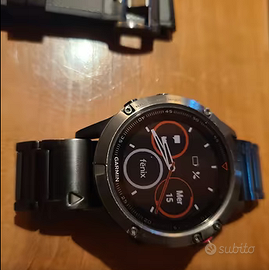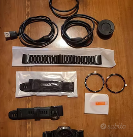Vendo smart watch fenix 5 con cinturino in titanio. L'orologio ha 4 anni e presenta lievi segni di uso quotidiano, qualche segno sul vetro visibile in controluce. Vendo perchè sono passato a huawey. Includo cavi di ricarica e cavo con basetta più 2 cinturini in gomma (uno nuovo) e un cinturino nuovo in inox nero. Più 2 corone e due vetri di protezione.