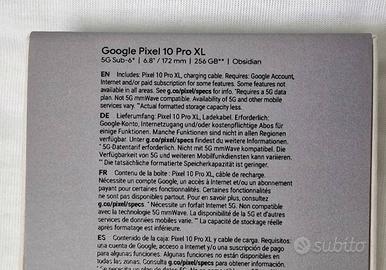 Propongo in vendita Google Pixel 10 Pro XL con memoria da 256GB nella elegante colorazione Ossidiana dispositivo appena acquistato mai utilizzato e ancora chiuso nella sua scatola originale