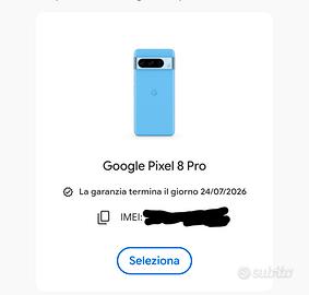 come da titolo Google Pixel 8 Pro 256GB Azzurro perfetto con pellicola e alcune cover. In garanzia fino a luglio.