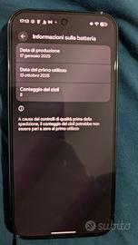 Telefono immacolato, senza graffi, usato qualche giorno (8 cicli totali di carica come da foto) con protezione schermo, obiettivo e cover montati. Mai caduto. È praticamente nuovo.