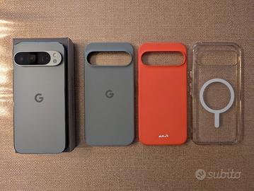 Vendo Google Pixel 9 Pro XL 16/512 GB nella colorazione Hazel (grigio chiaro) in garanzia fino al 23/08/26. Il dispositivo risulta perfettamente funzionante in ogni sua parte e non presenta il minimo segno di usura. Oltre allo scatolo, cavo USB, spilletta e manualistica, includo anche 3 cover di cui: - una originale Google; - una della Spigen con Metal Ring; - una della Mous rigida. Resto a disposizione per ulteriori info.