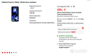 Google Pixel 9a 128 - Scontrino del 18/04/2026