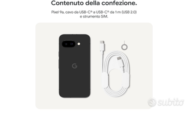 📦 Inclusi: Google Pixel 9a, scatola originale, cavo USB-C, cover protettiva e pellicola display incluse (sempre).