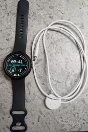 Google pixel Watch 3 45mm nero in garanzia fino a settembre 2026, cinturino nero mai usato, cavo di ricarica originale (quindi type c), secondo cavo (USB A), base per ricarica in silicone nero, 2 pellicole copri display, cover della Caseology e bumper in tpu nero. Il display senza pellicola ha qualche micro segno dato da utilizzo iniziale senza coperture. Con pellicola il display risulta assolutamente perfetto come da foto.