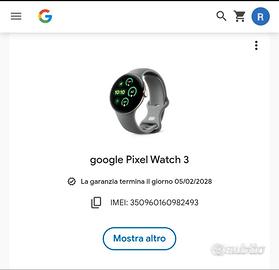 Vendo Pixel Watch 3, 41mm, versione LTE, come nuovo, in garanzia fino il 05/02/2028, con cinturino loop di ricambio. Nessun segno e nessun graffio. Senza scontrino. Prezzo non trattabile!!!