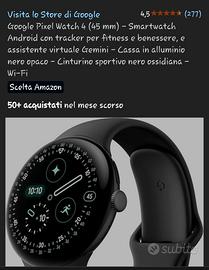 Google Pixel Watch 4 (45 mm) - Smartwatch Android con tracker per fitness e benessere, e assistente virtuale Gemini - Cassa in alluminio nero opaco - Cinturino sportivo nero ossidiana - Wi-Fi
