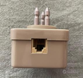 Ideale sui vecchi impianti con prese a muro tripolari italiane a 3 fori, per collegamento dei nuovi connettori PLUG RJ11 di vari dispositivi, quali ad es. telefono, fax, modem, contemporaneamente con spine tripolari sullo stesso adattatore.