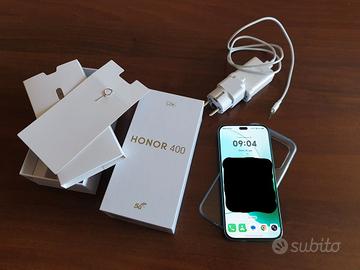 Honor 400 Lite è un smartphone con display Touchscreen da 6.7 pollici 5G, GPS, fotocamera 108 megapixel, batteria 5230mAh Dimensioni 161 x 74.55 x 7.29 mm, peso 171 g Processore 2x 2.5 GHz Cortex-A78 + 6x 2.0 GHz Cortex-A55 Ram 12 gb, rom 256 gb Usato praticamente nuovo 20 giorni di vita, essendo un acquisto del regno unito viene ceduto con pellicola applicata, confezione originale, cavo, carica batteria UK con adattatore ed una cover trasparente in silicone Tutto come da foto, prezzo non trattabile visto e piaciuto Preferisco il ritiro di persona, in caso di spedizione vanno aggiunte 10 euro