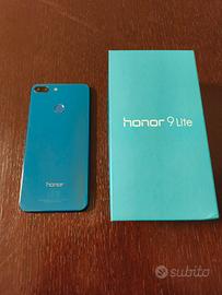 Honor 9 Lite in colorazione azzurra. Il retro del cellulare è leggermente sollevato ma funzionante. Caricatore non incluso.