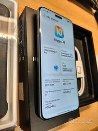 Completo di scatola, tutti gli accessori di serie, svariate cover di cui una originale Honor e documento di acquisto di gennaio 2025 (11 mesi di garanzia residua, acquistato sul sito Honor).