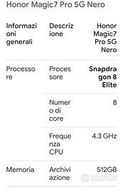 indistinguibile dal nuovo perfetto in ogni sua parte, vindo/scambio Honor Magic 7 pro 12+12 GB di RAM e 512 GB di memoria interna. POTENTISSIMO grazie al suo processore Snapdragon 8 elite (vedi foto 3) in garanzia. completo di scatolo e accessori, documento fiscale. ripeto perfetto. scambio con cellulari OnePlus, Pixel, Nubia, Xiaomi, Samsung.
