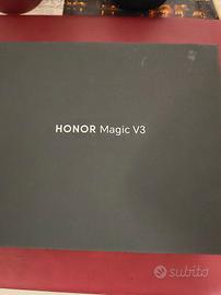 Honor Magic V3 schermo interno funzionante ma con pixels centrali spenti (striscia nera) da far sostituire (errore per aver tolto il vetrino di protezione e si sono spenti i pixels, no cadute, no crepe, costo circa €400). Resto funzionante, con scatola.