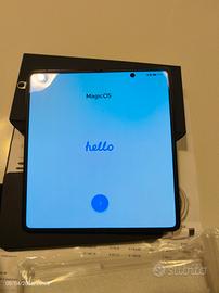 Honor Magic V5 Nero 512 GB acquistato sul sito Honor in Settembre 2025 inclusa assicurazione della durata di 1 anno sui display. segnalo piccolissimi segni sulla scocca vicino all'altoparlante. Display esterno ed interno perfetti zero segni. display interno con pellicola in gel applicata dal 1 giorno . regalo cover trasparente e pellicole per tutti i display. nb: manca cover contenuta nella confezione originale. Fattura presente