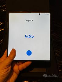 Smartphone Honor Magic Vs con Ram 12Gb e Rom 512Gb. Praticamente nuovo perché entrambi gli schermi interno ed esterno sono stati sostituiti in garanzia. Sempre tenuto con custodia e in modo preciso infatti non ha graffi. Comprese anche 4 cover integrali.