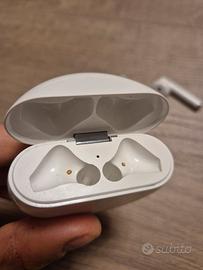 Huawei Freebuds 3 colore bianco e con in omaggio cover in silicone rosa.