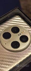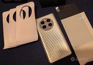 Viene spedito nella sua scatola originale con il cavo USB, senza caricabatterie, con una pellicola privacy in idrogel già applicata, una nuova di scorta, una pellicola applicata sul vetro posteriore e altre 3 pellicole effetto fibra di carbonio di scorta.